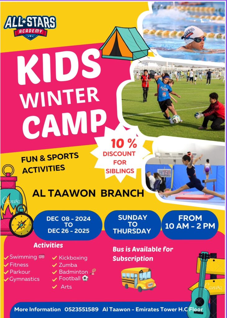 أكاديمية كل النجوم ، مقرها في الإمارات العربية المتحدة مع فروع في الشارقة، دبي، وعجمان، نحن في أكاديميتنا ملتزمون بتعزيز الصحة واللياقة البدنية للأفراد من جميع الأعمار. نقدم مجموعة متنوعة من الأنشطة الرياضية واللياقة البدنية، بما في ذلك: