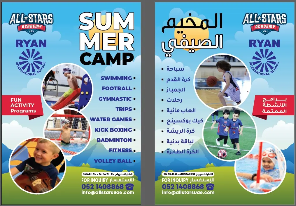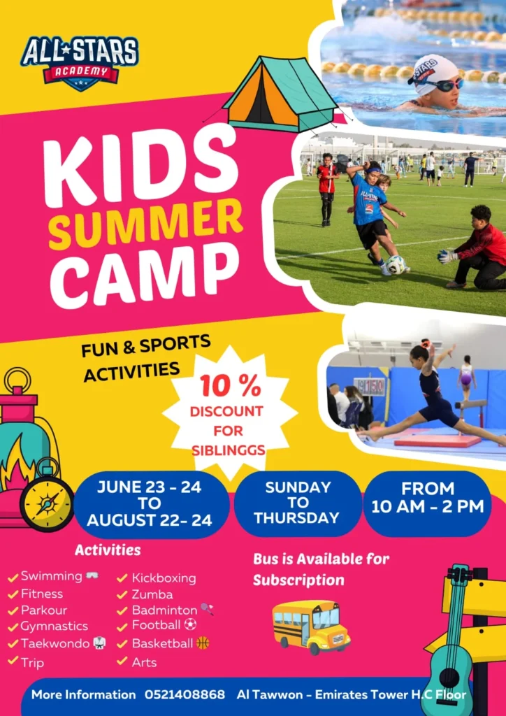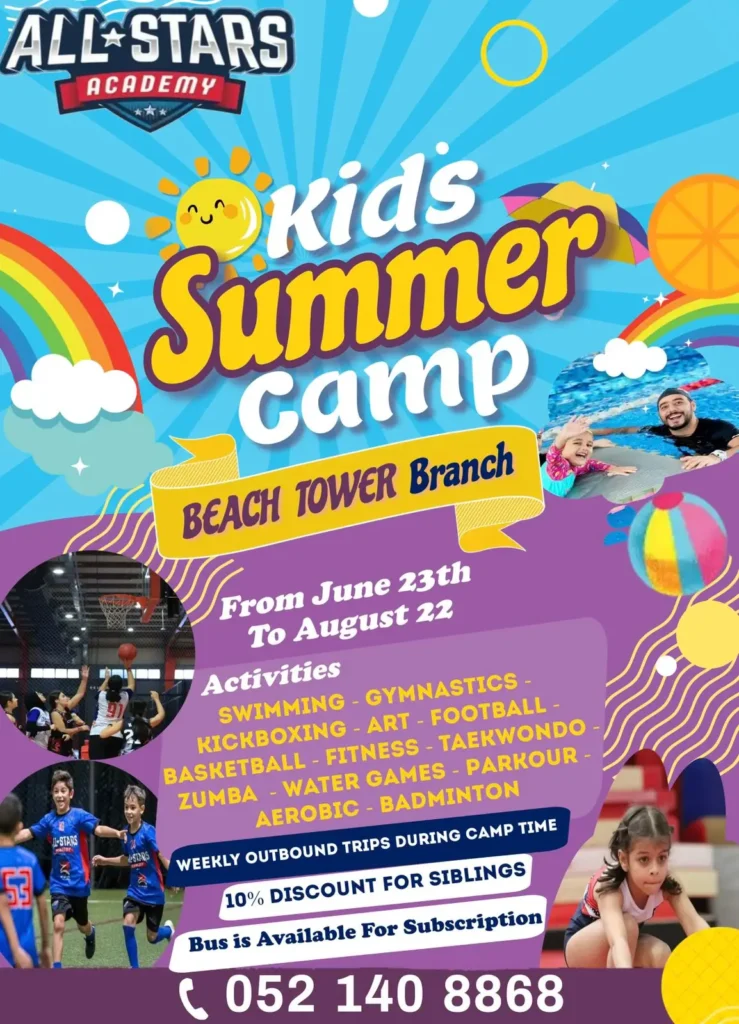 All Stars Academy, based in the UAE with branches in Sharjah, Dubai, and Ajman, is dedicated to promoting health and fitness for individuals of all ages. We offer a wide range of sports and fitness activities, including swimming, Taekwondo and kickboxing, football, basketball, gymnastics for kids, a fully equipped gym for adults, and specialized fitness programs for women. Our expert coaches and state-of-the-art facilities ensure a top-notch experience for all participants.